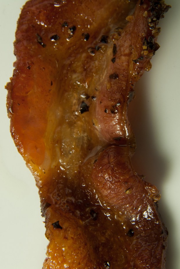 Bacon as a raw ingredient came last and was the first to be cooked, since it won’t suffer from sitting or rewarming…